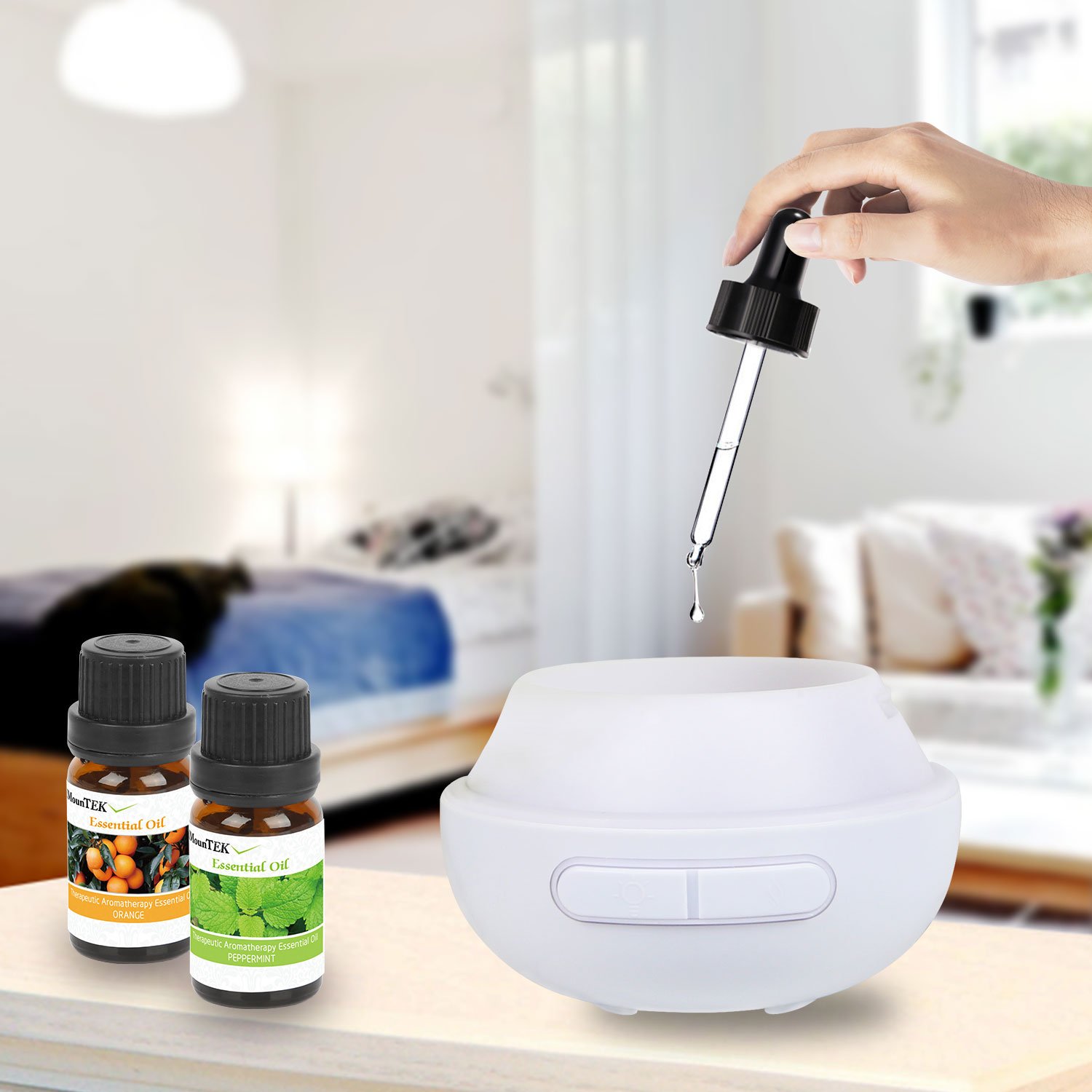 Our iMounTEK Aroma Diffuser andopts well-designed mist outlet and ultrasonic technology, which can be used as a aromatherapy diffuser with a few drops of your favorite esential oil or a humidifier without oils provides more than a conventional mist to output finer mist with ultra-low noise, it can uplift your spirits, assist in relaxation or ward off infections. Just fill with tap water and add a few drops of your favorite esential oil, the room will soon be filled with the goodness of your choice, also it emits a cool mist and moisturizes the air around it, relieving dry cough, sinus, and cold and flu symptoms. Its upports 2 LED lighting modes: alternating bright to dim and continuous light, can be set to your preferred mode to suit various environments. The changing light is programmed at comfortable frequency to vividly simulate human deep breath, providing therapeutic function of relaxing the nervous system.