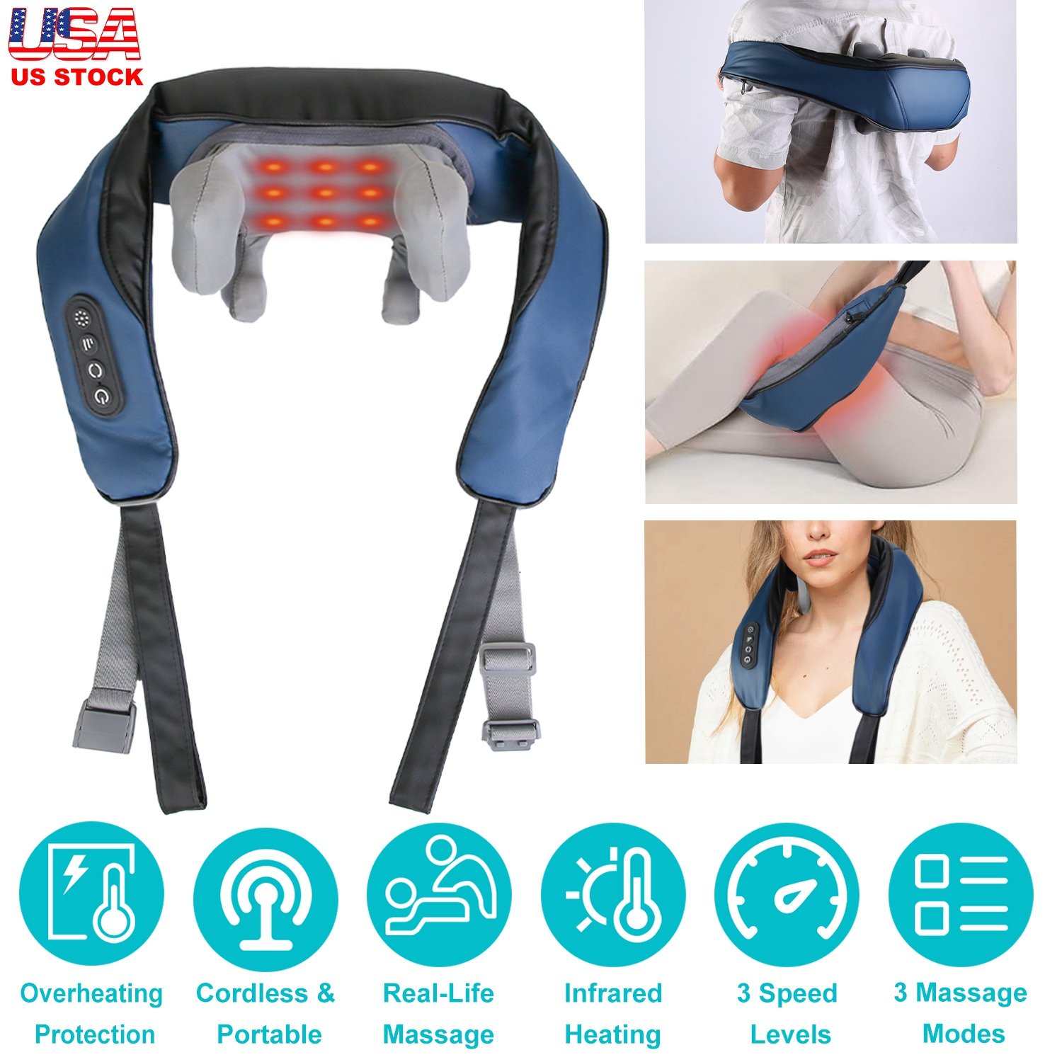 Electric Neck Shoulder Massager with Infrared Light Heating 3 Massage Modes Speeds Kneading Grasping Shiatsu Massage Pillow For Back Arms Thighs Relea