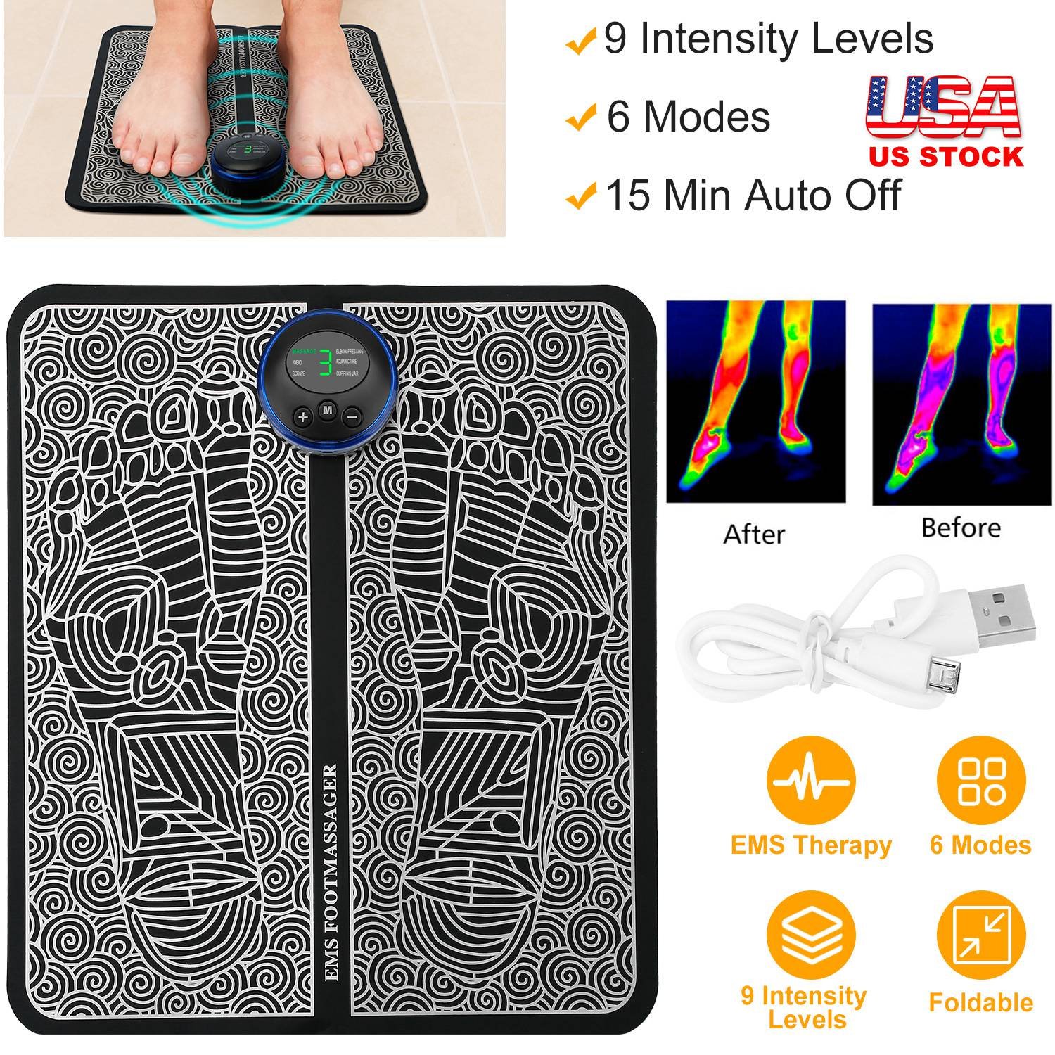 EMS Foot Massage Pad Electric Stimulator Massager Unit Rechargeable Leg Reshaping Muscle Pain Relax Massage Mat w/ 6 Modes 9 Intensity Levels